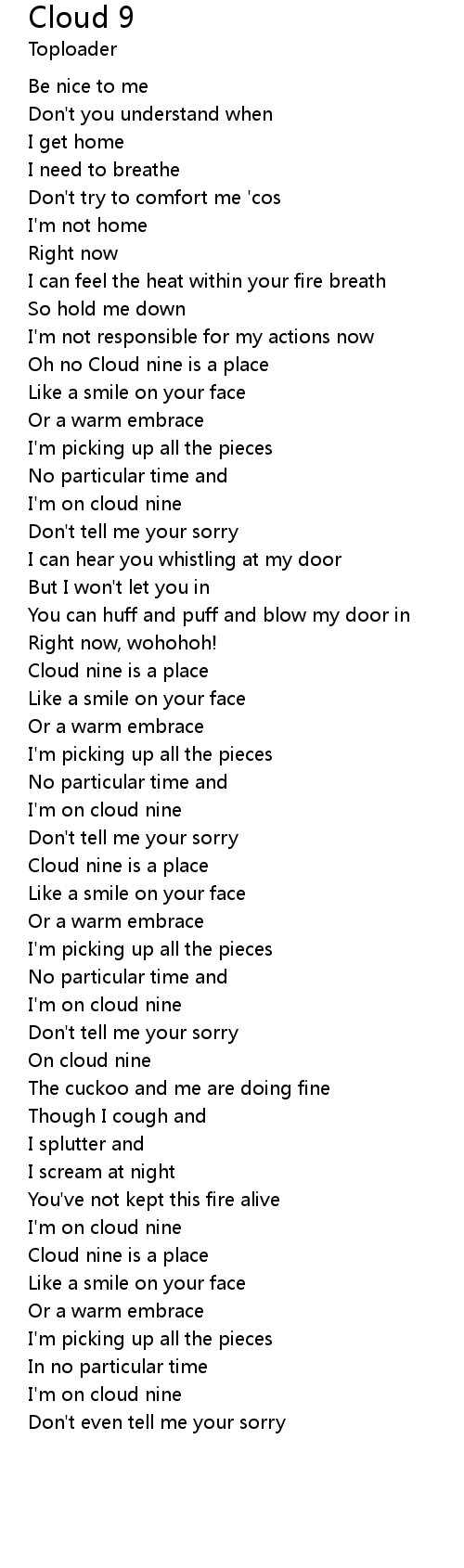 Oh no Cloud nine is a place |