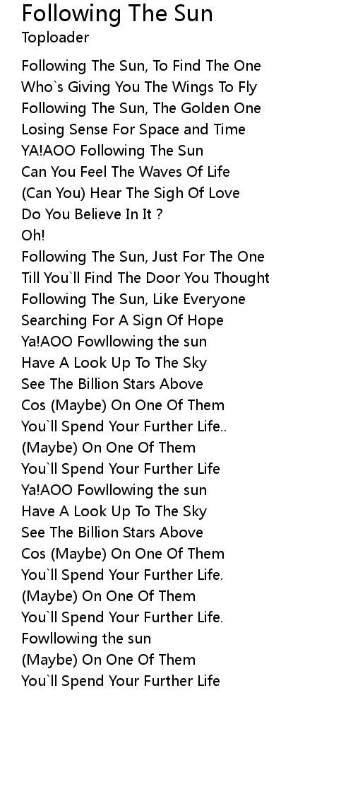 Following The Sun, Like Everyone |