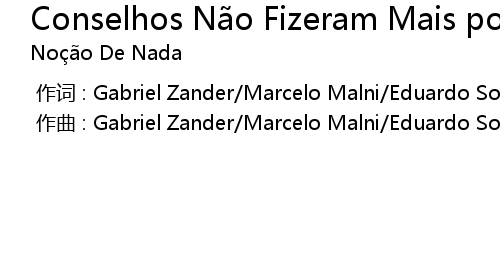 | [00:00.00-1] | zuò qǔ : Gabriel Zander Marcelo Malni Eduardo Sodré Gabriel Cunha |