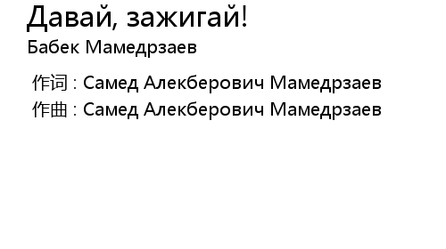 | [00:00.00-1] | 作词 : Самед Алекберович Мамедрзаев |