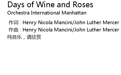 | [00:01.00] | 作曲 : Henry Nicola Mancini/John Luther Mercer |