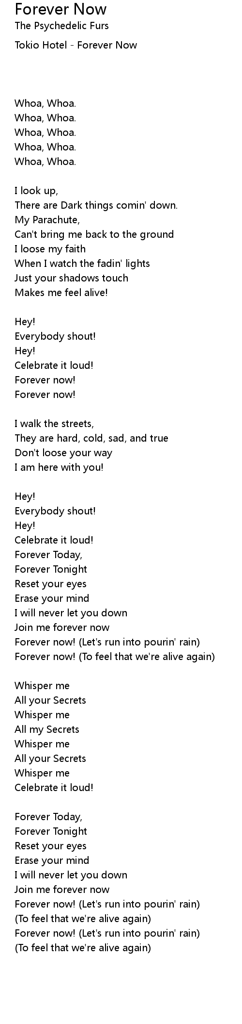 Forever now! (Let's run into pourin' rain) |