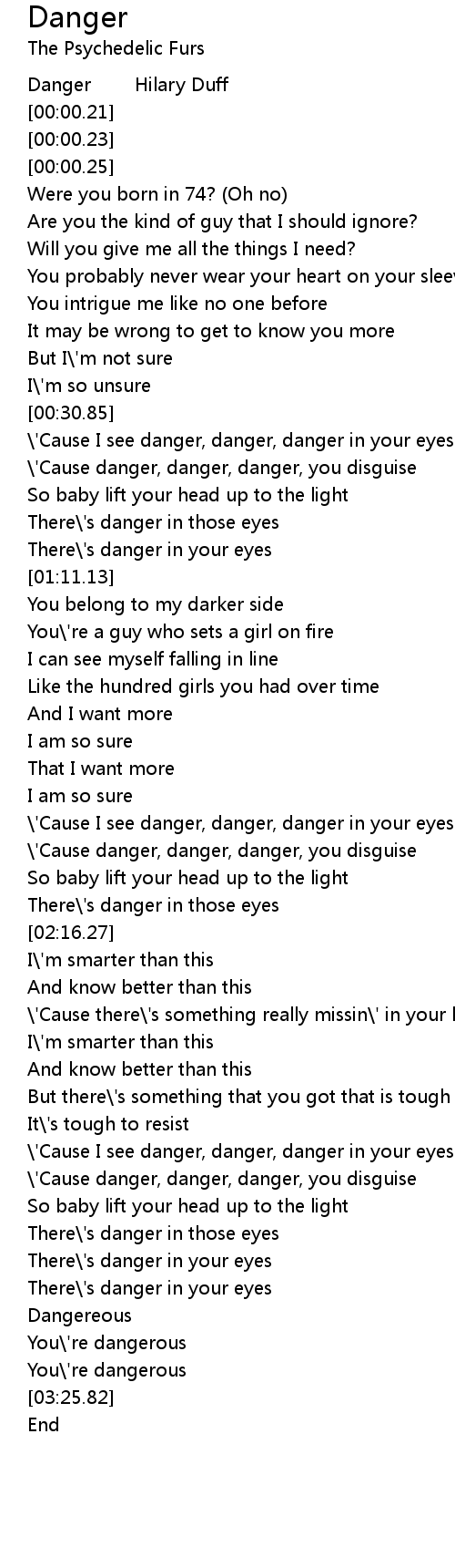 [01:43.42] \'Cause I see danger, danger, danger in your eyes