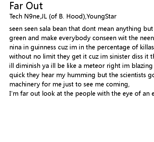 seen seen sala bean that dont mean anything but i can make a man get alot of green and make everybody conseen wit the neen im a menace they wanna put the nina in guinness cuz im in the percentage of killas who finish wit me nigga without no limit they get it cuz im sinister diss it the gimmick when i rip it ill diminish ya ill be like a meteor right im blazing everything in my way so quick they hear my humming but the scientists gotta get motion million dollar machinery for me just to see me coming, |