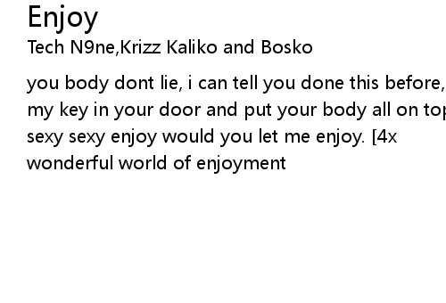 | [4x][verse 1] | you body dont lie, i can tell you done this before, you too locked up let me put my key in your door and put your body all on top of me i want to enjoy[chorus]sexy sexy enjoy would you let me enjoy. welcome to my wonderful world of enjoyment |