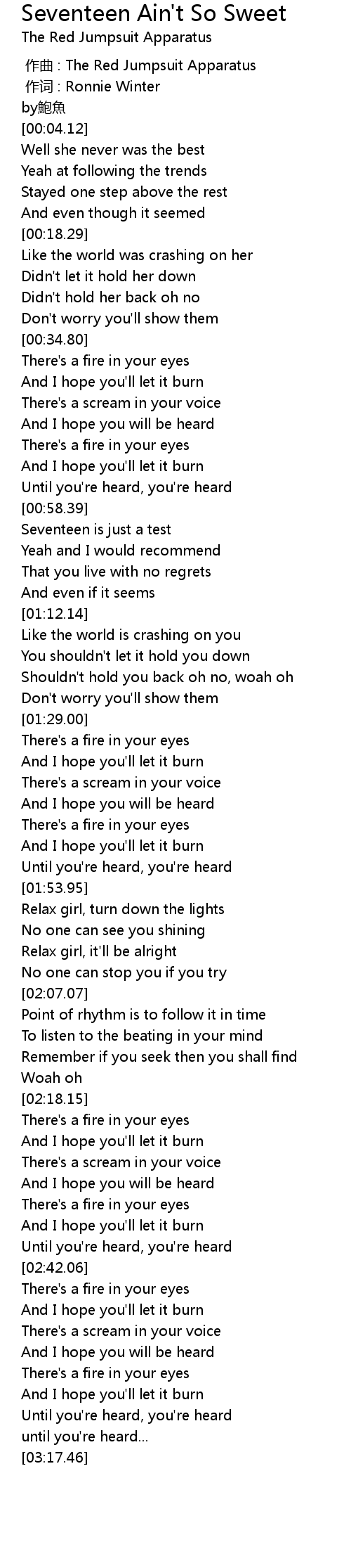 | [00:00.00] | zuò qǔ : The Red Jumpsuit Apparatus |
