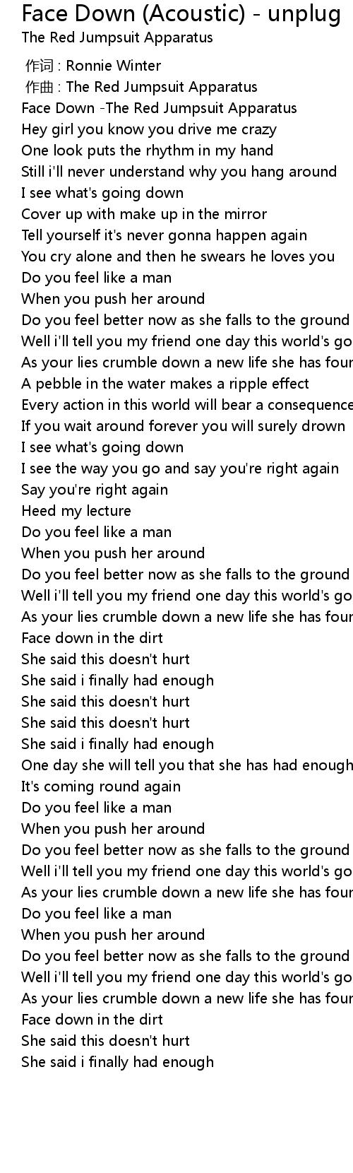 | [00:00.00] | Face Down -The Red Jumpsuit Apparatus |