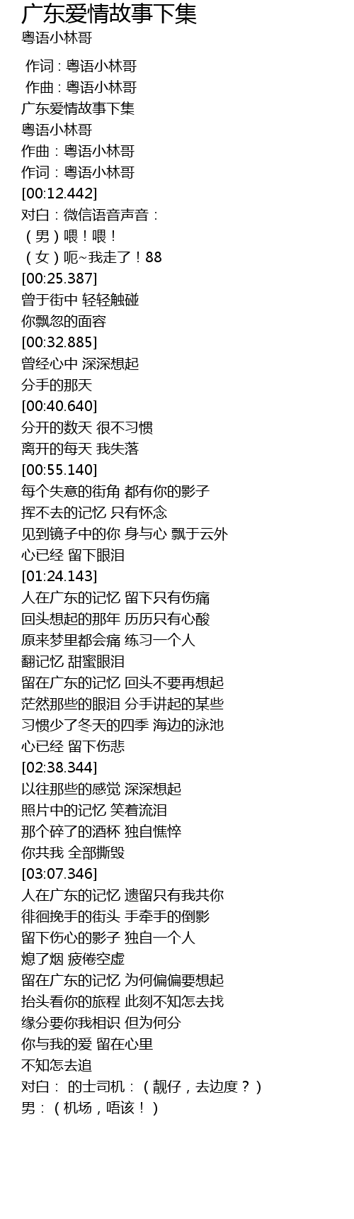 | [00:00.000] | 作词 : 粤语小林哥 |