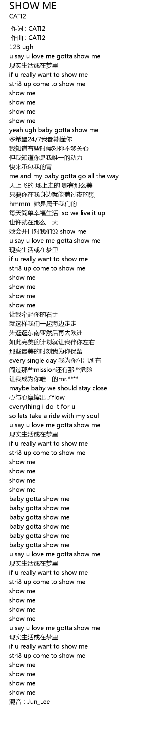 | [01:15.613] | tā huì kāi kǒu duì wǒ men shuō show me |
