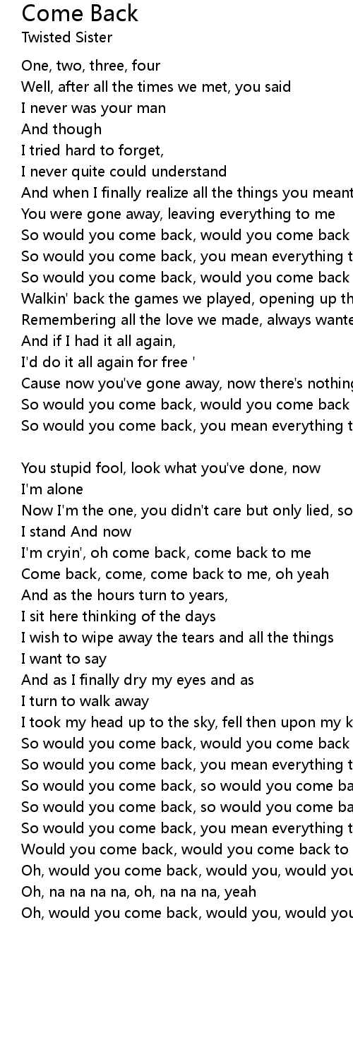 Oh, would you come back, would you, would you come back to me |