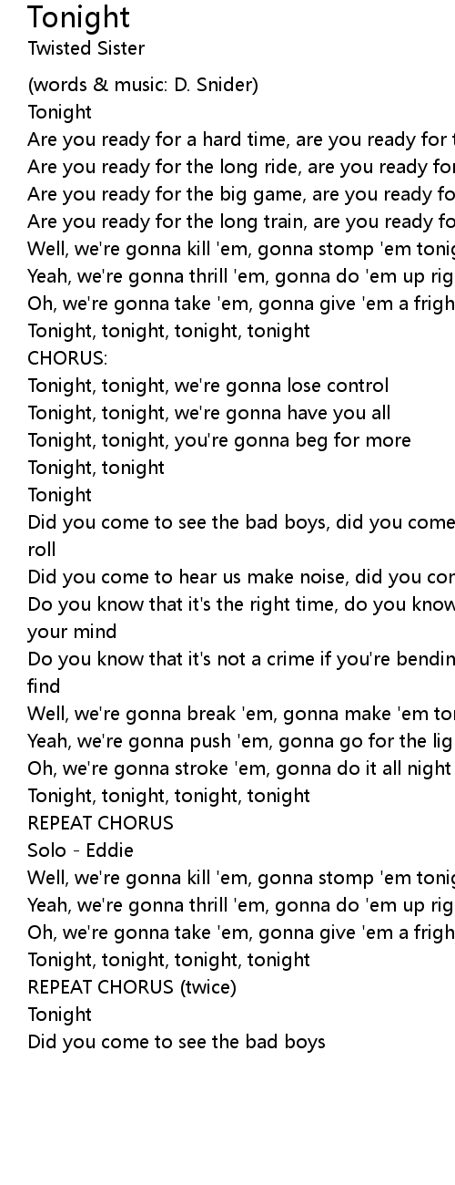 Well, we're gonna break 'em, gonna make 'em tonight |