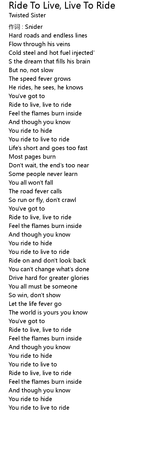 | Song | Ride To Live, Live To Ride |