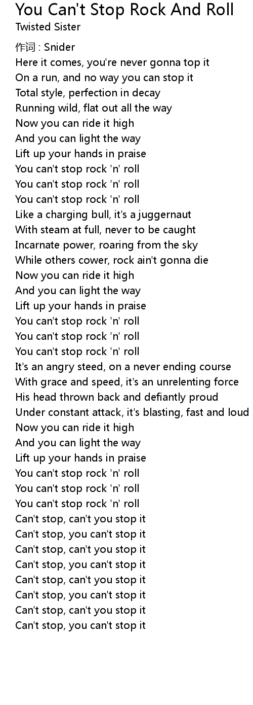 | You can' t stop rock ' n' roll | |