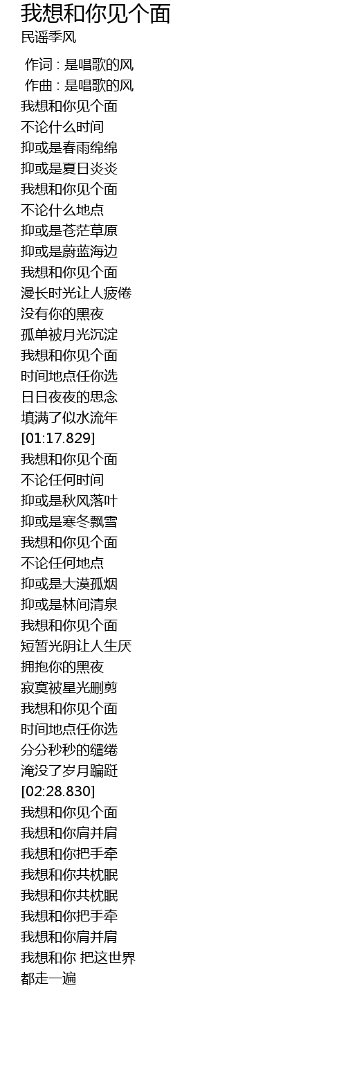 | [01:52.579] | wǒ xiǎng hé nǐ jiàn gè miàn |