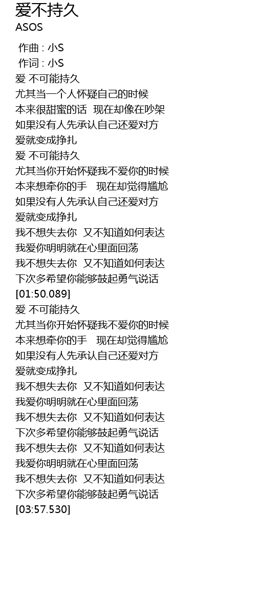 | [03:03.180] | 我不想失去你 又不知道如何表达 |