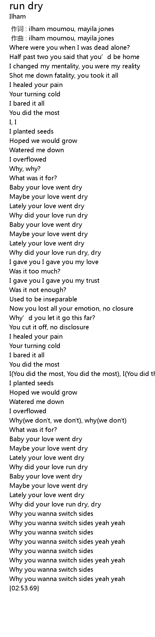 | [02:49.48] | Why you wanna switch sides yeah yeah |