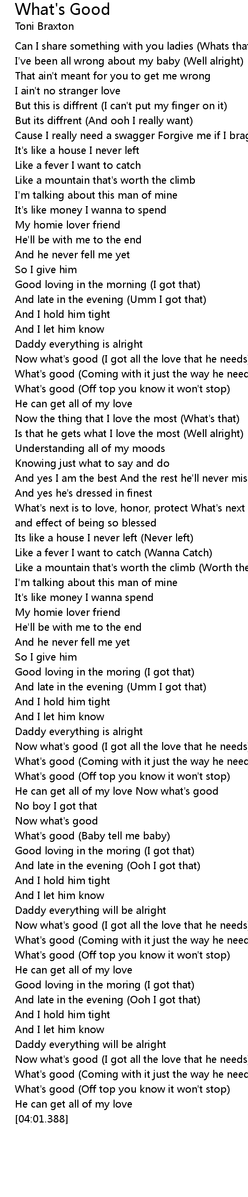He can get all of my love Now what's good |