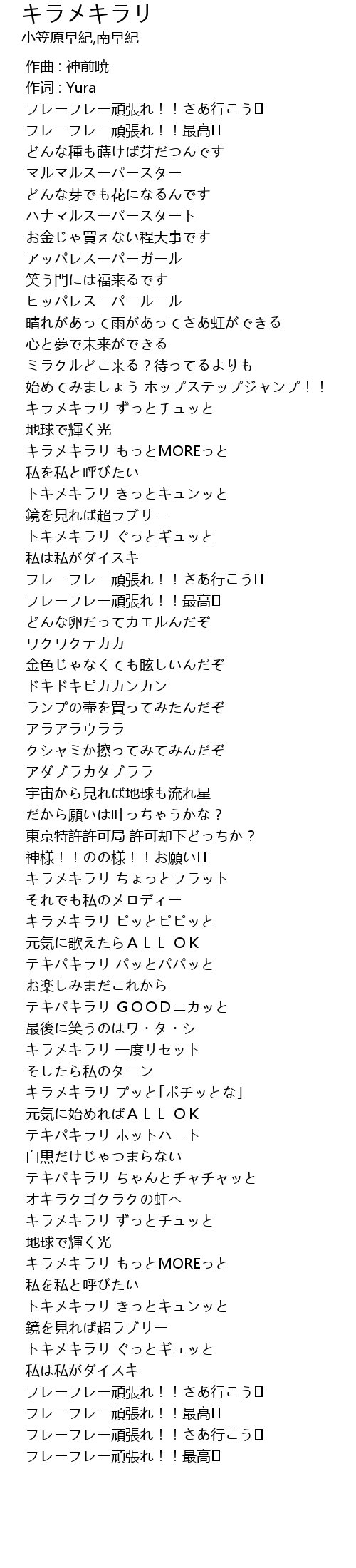| [01:00.710] | キラメキラリ ずっとチュッと |