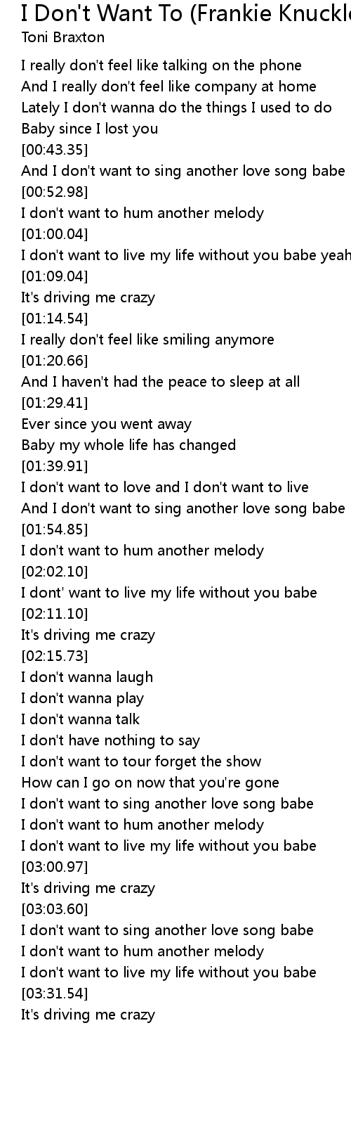 I Don't Want To (Frankie Knuckles Radio Edit) - Frankie Knuckles Radio Edit Lyrics