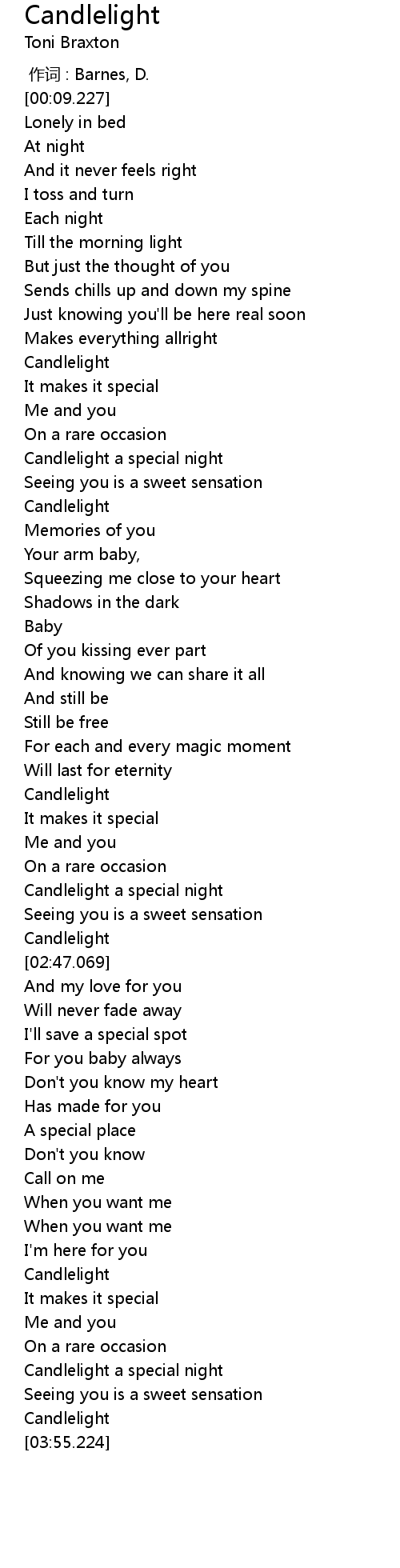 | [02:11.496] | Candlelight |