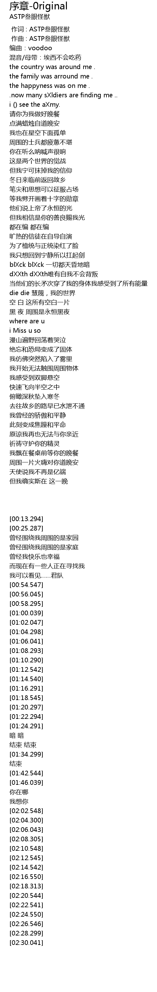 | [00:00.000] | 作词 : ASTP叁眼怪獣 |