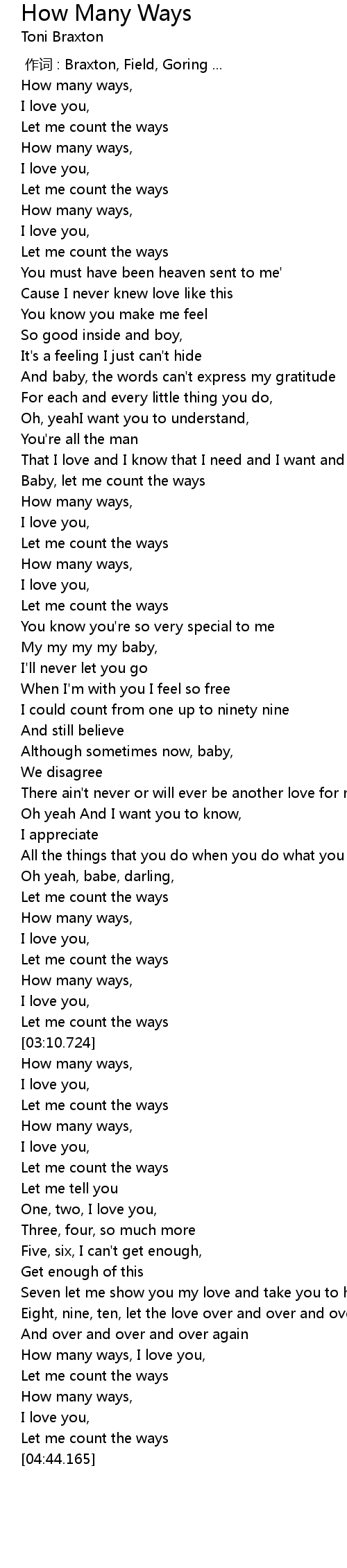 | [03:40.107] | Let me count the ways |