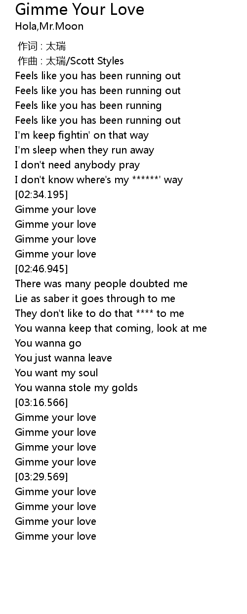 | [00:01.000] | 作曲 : 太瑞/Scott Styles |