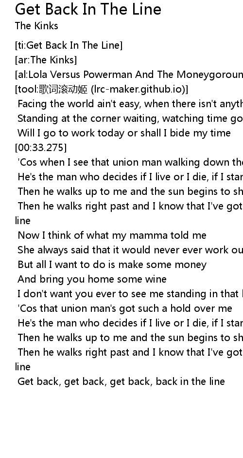| [02:37.333] | Get back, get back, get back, back in the line |