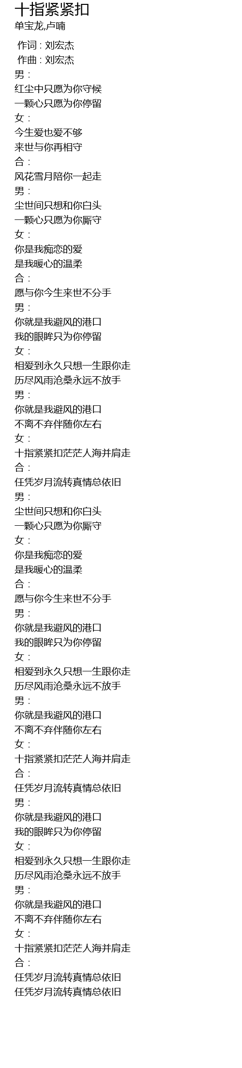 | [00:00.00] | 作词 : 刘宏杰 |