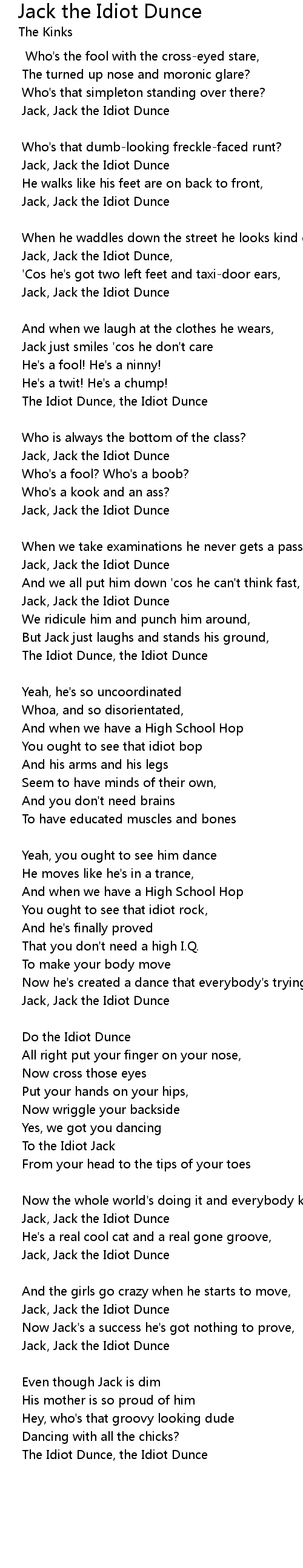 Jack, Jack the Idiot Dunce |