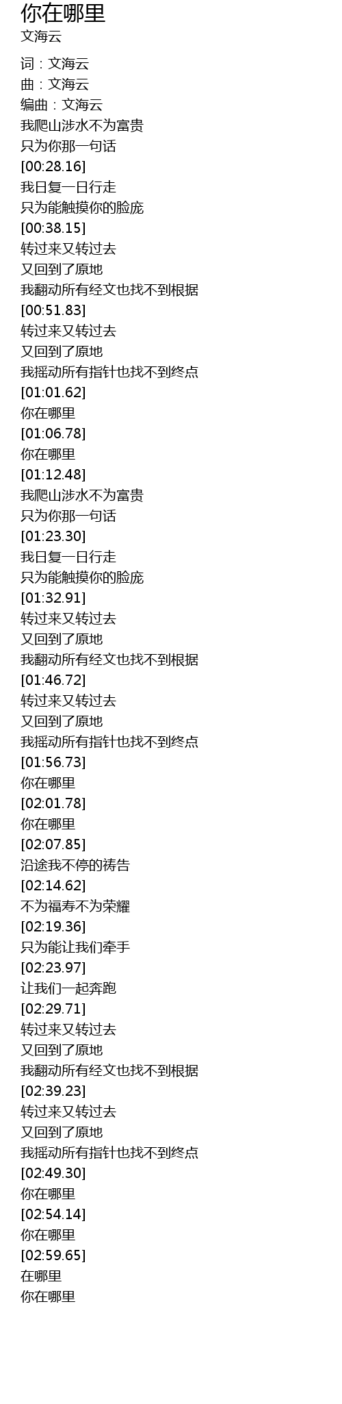 | [00:17.01] | 编曲:文海云 |