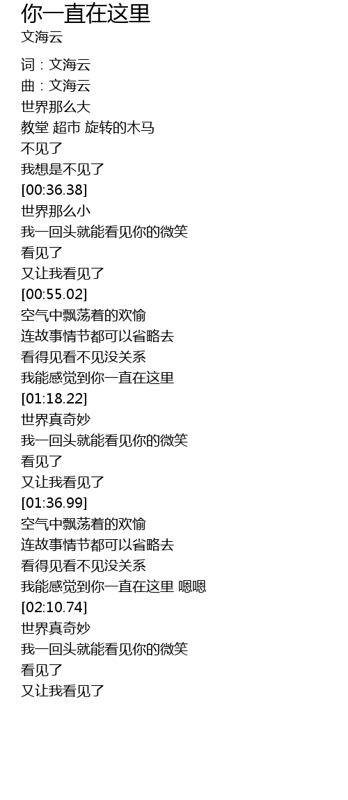 | [02:03.46] | 我能感觉到你一直在这里 嗯嗯 |