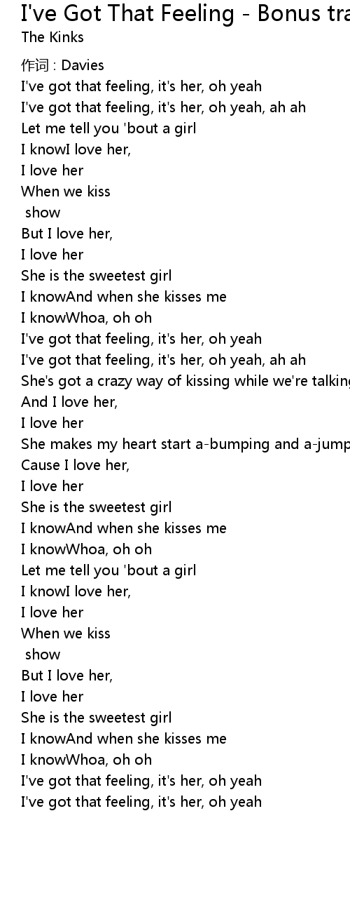| I've got that feeling, it's her, oh yeah, ah ah | |