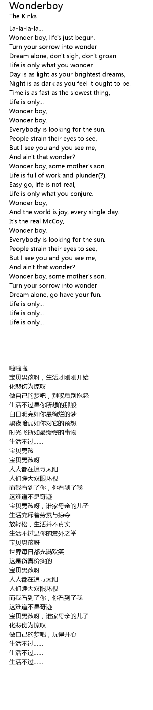 Wonder boy, life's just begun. |