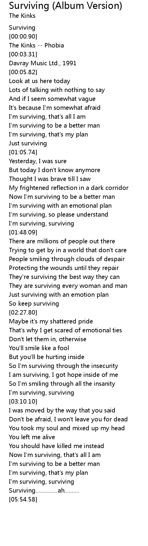 | [03:30.10] | Now I'm surviving, that's all I am |