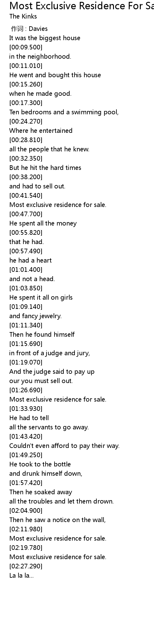 | [00:21.260] | Ten bedrooms and a swimming pool, |