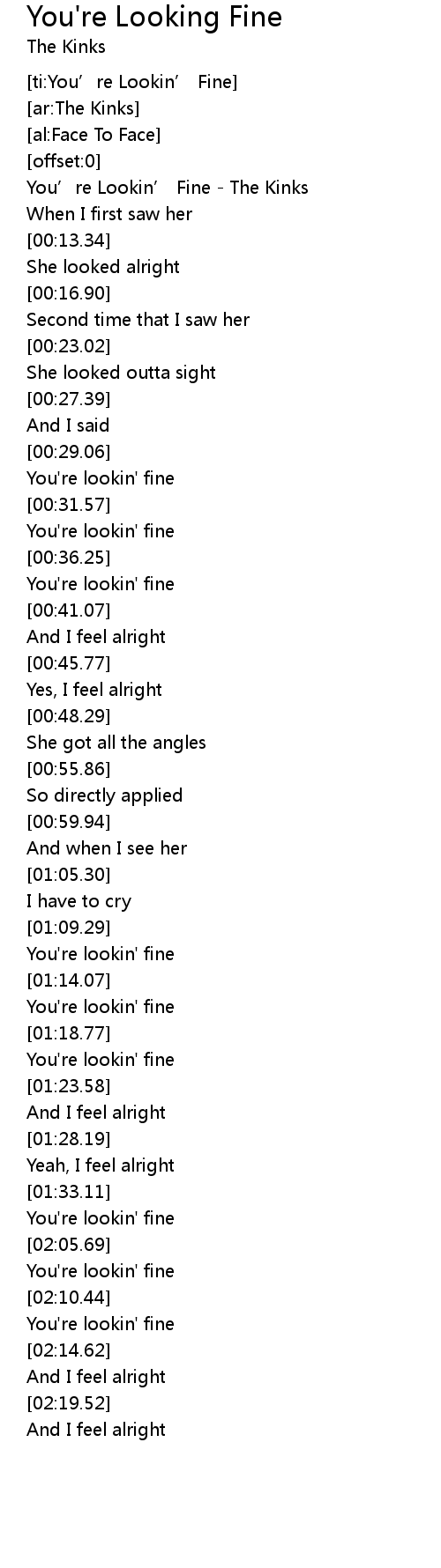 | [00:00.30] | You' re Lookin' Fine The Kinks |
