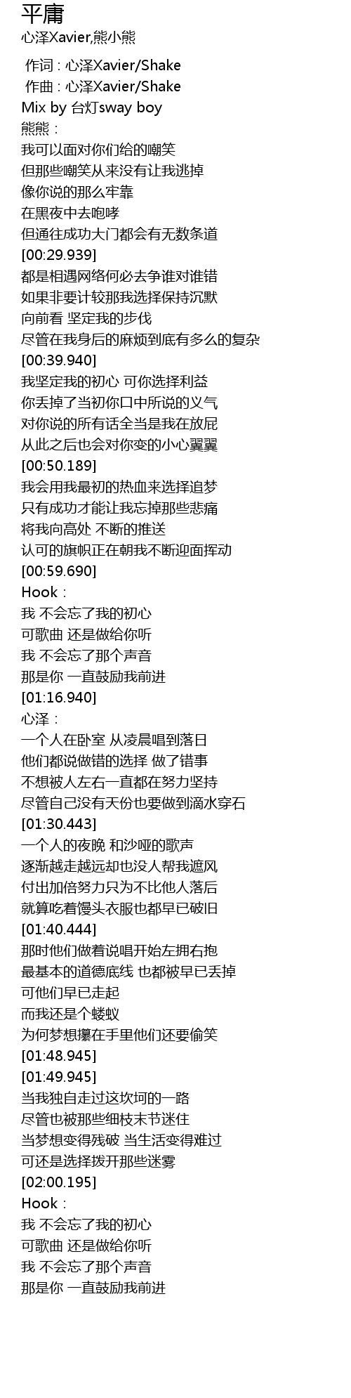 | [00:01.000] | zuo qu : xin ze Xavier Shake |