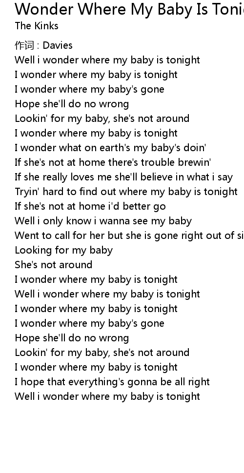 | Well i wonder where my baby is tonight | |