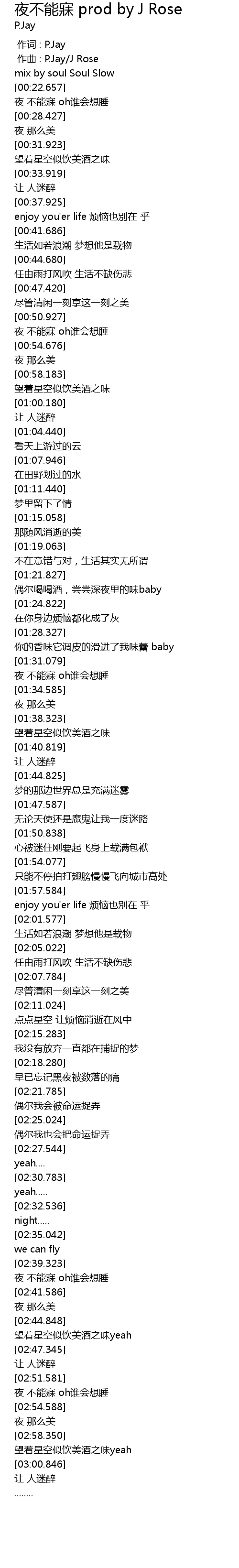 | [00:53.923] | 夜 不能寐 oh谁会想睡 |