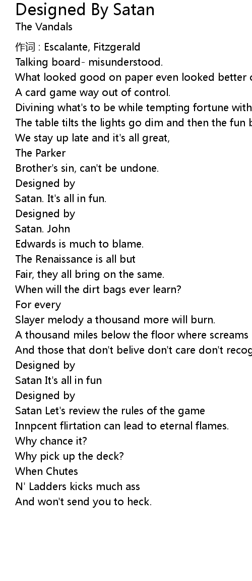 | Song | Designed By Satan |