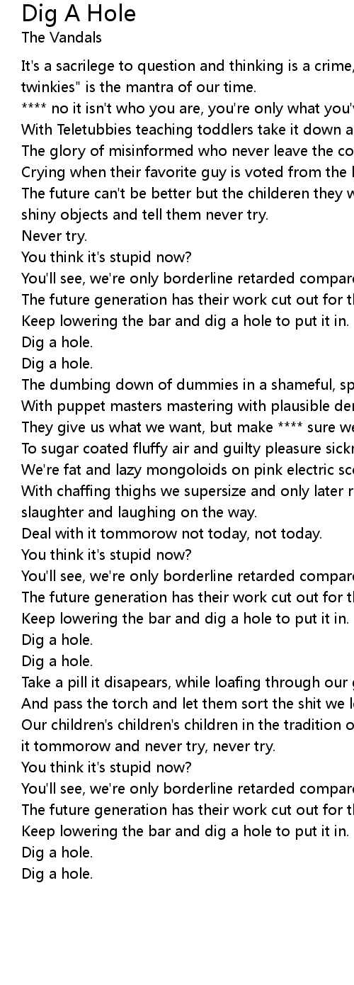 Our children's children's children in the tradition of our lives will deal with it tommorow and never try, never try. |
