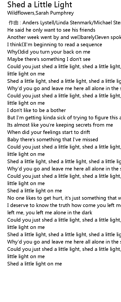 | [00:45.310] | Shed a little light, shed a little light, shed a little light on me |