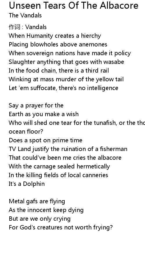 | Who will shed one tear for the tunafish, or the thousand other species on the ocean floor? | |