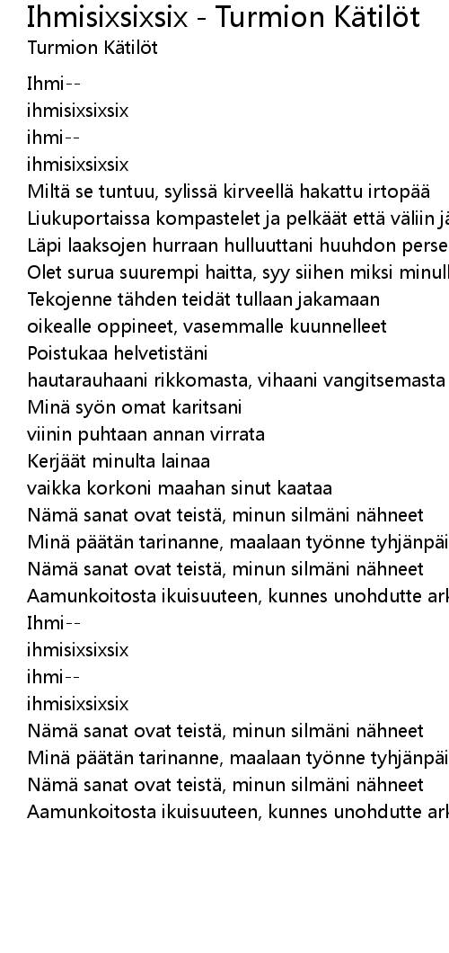 | Song | Ihmisixsixsix - Turmion Kätilöt |