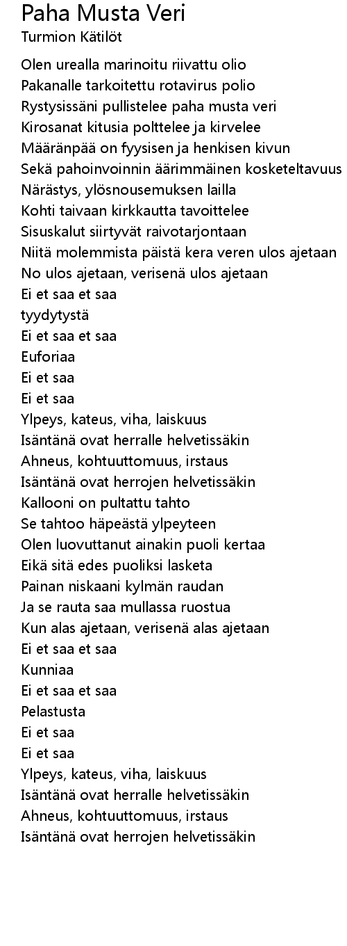 | Rystysissäni pullistelee paha musta veri | |