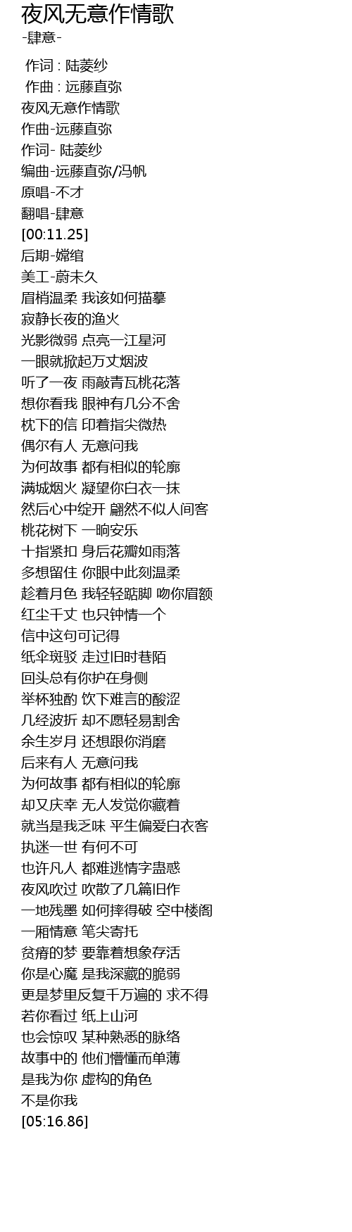 | [04:18.50] | 一厢情意 笔尖寄托 |