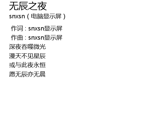 | [00:00.00] | 作词 : snxsn显示屏 |