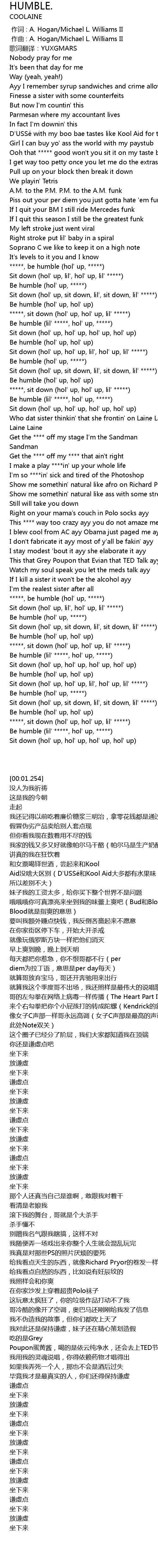 | [01:08.569] | Be humble (lil' *****, hol' up, *****) |