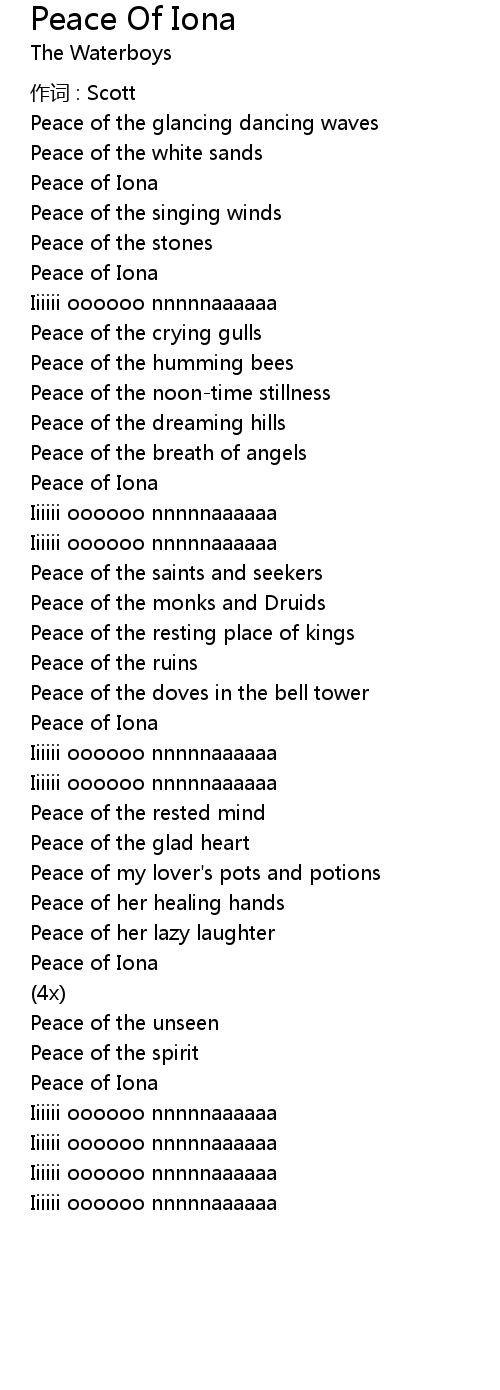 | Song | Peace Of Iona |